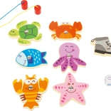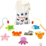 I spillet fanger børn forskellige farverige havdyr ved hjælp af to magnetiske fiskestænger. Spillet suppleres af en farvet terning, som bestemmer, hvilket dyr der skal fanges. Det hele er pakket i en praktisk tekstilpose, ideel til rejser.