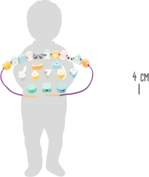 De træbeklædte ender på snoren gør det lettere at trække perlerne på og styrker hånd–øje-koordination og fingerfærdighed.