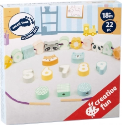 Dette kvalitets sæt i træ fra SMALL FOOT giver børn glæden ved at udforske tal og former. De blide pastelfarver og behagelige former indbyder til leg, mens den praktiske snor med træafslutning hjælper små fingre med nemt at trække de enkelte dele på. Sættet er ideelt til den første indlæring af tallene 0–9 og til udvikling af tålmodighed, koncentration og logisk tænkning.