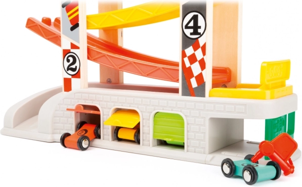 Banen er designet til at udvikle færdigheder i imiterende leg og finmotorik, mens børnene ræser med de fire farverige biler. Desuden kan børnene let rydde op deres biler efter ræs med det praktiske parkerings- og opbevaringssystem.