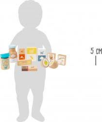 Dette realistiske sæt med bageingredienser er designet til at bringe børn tættere på madlavning og bagning på en sjov måde. Takket være kvalitetstræ og detaljeret udførelse øver børn koordination, fantasi og kommunikation ved fælles leg i legekøkkenet.