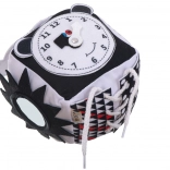 Denne bløde sensoriske terning gør hver dag for din lille opdagelsesrejsende fantastisk. Kontrastmønstre og sort-hvide farver stimulerer synet, mens forskellige teksturer hjælper med udviklingen af berøring. Terningen er udstyret med en rasle og knitrende elementer, der fanger opmærksomheden hos selv de mindste.