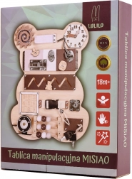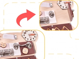 For at sansebrættet skal fange barnets opmærksomhed og opmuntre til leg, har tavlen form som en sød bamse og de anvendte farver er behagelige og glæder øjet! På brættet er der mange elementer fra de enkleste aktiviteter, som eksempelvis at flytte kugler på en abacus, til de mere komplicerede, som at åbne en lås med en nøgle!