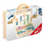 Trækufferten med værktøj til børn Nordic tilbyder utallige muligheder for at udvikle finmotorik og kreativitet. Børn kan samle forskellige konstruktioner ved hjælp af de mange farvede dele samt robuste skruer og møtrikker. Kufferten er solid og holdbar, udstyret med elastiske stropper til sikker fastgørelse af værktøjerne.