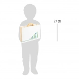 Det pålidelige metal-luk og det børnevenlige håndtag gør den nem at transportere. Sættet er fremstillet af en kombination af krydsfiner og massivt træ, hvilket giver høj levetid og en række praktiske detaljer. Børn kan vælge mellem forskellige designs: værkstedet Miniwob og det skandinaviske Nordic.