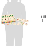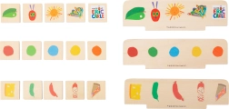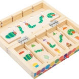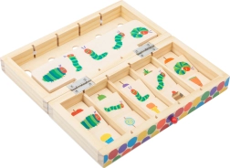 Designet med det populære Very Hungry Caterpillar-motiv fanger straks børns opmærksomhed. Brikker og låg er lette at håndtere, og den robuste udførelse i træ sikrer lang holdbarhed. Efter legen lukkes alt nemt med elastikbånd – intet falder ud.