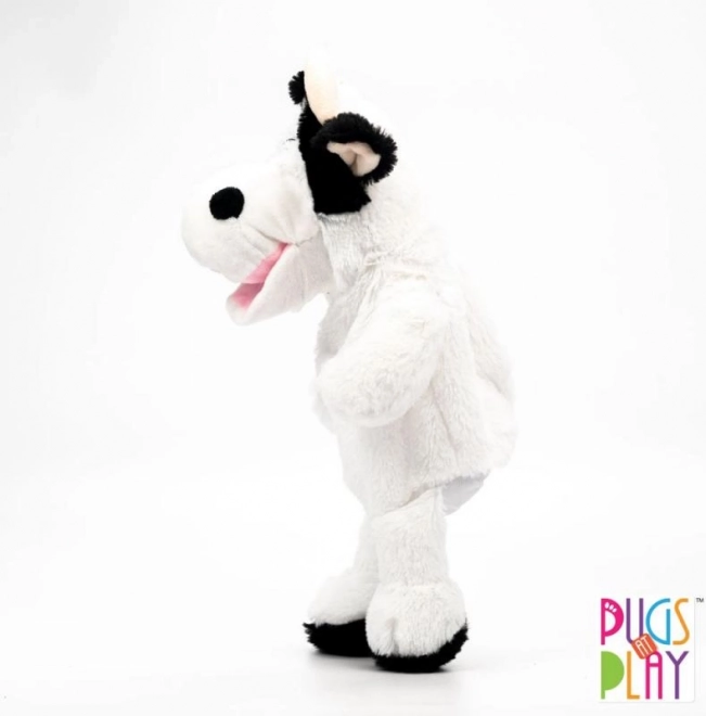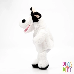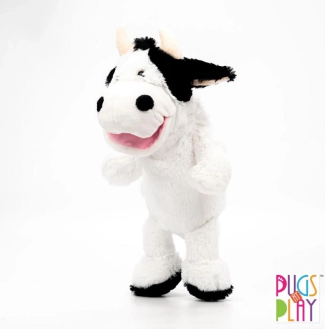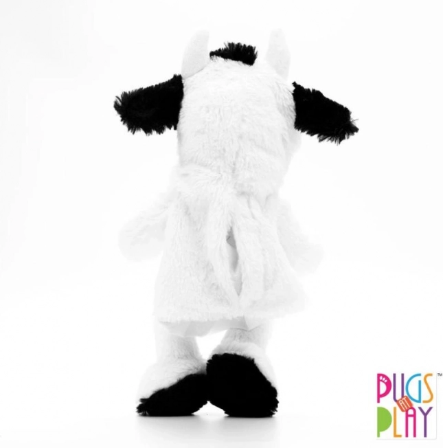 Den søde hånddukke ko fra PUGS AT PLAY vil glæde alle små dyreelskere. Takket være åbningen til hånden kan du nemt styre bevægelser og mundens lyd, hvilket gør dukken til en sjov syngende ven. Den er lavet af blødt og lækkert plys, som er behagelig at røre ved, og den udvikler finmotorik, kreativitet og ordforråd på en legende måde. Højde ca. 32 cm (mål ca. 14 × 14 × 32 cm). Batterier 3× AG13 medfølger og er ikke beregnet til udskiftning. Vedligeholdelse: håndvask op til 30 °C.