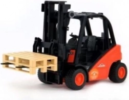 Realistisk model af gaffeltrucken Bruder Linde H30D i skala 1:16, som glæder både små byggere og samlere. Den tilbyder fuldt funktionsdygtigt løfteudstyr, vippende løftemast, styring af baghjul og der medfølger 2 paller. Fremstillet af slidstærk plast i Tyskland.