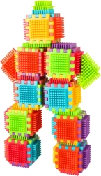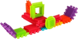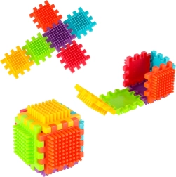 Blokkene er lavet af plast af høj kvalitet, de er meget lette, fleksible og samtidig super holdbare. De hjælper med at lære nye former og farver og udvikler finmotorikken. Blokkene er designet til at stimulere barnets udviklende sanser: syn gennem markante farver og berøring gennem den originale form og forbindelsesmåde. Blokke, der giver dig fantastiske muligheder for kreativ leg! Ud over den traditionelle mulighed for at kombinere som med almindelige klodser kan disse blokke også forbindes med hele fladens side, hvilket giver endnu en skabemulighed. De kan bruges til at bygge bygninger, robotter og andre konstruktioner!