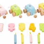 Det træfødselsdagstog fra Small Foot kombinerer leg og dekoration. Dets pastelmalede vogne tilføjer farve og charme til enhver fest. Med mulighed for fri samling og adskillelse af de enkelte dele bliver toget en alsidig legetøjsfavorit, der vokser med barnet og kan bruges i årevis. Sættet indeholder: