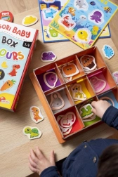 Denne farverige puttekasse bygger på principperne i MONTESSORI-metoden og guider børn til selvstændig udforskning og sortering. Under legen lægger og matcher børnene elementer efter farver, hvorved de nænsomt udvikler deres sanseopfattelse, træner koncentrationen og oplever glæde ved hver korrekt placering.