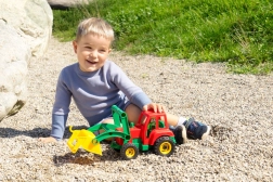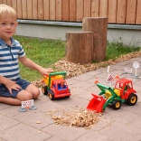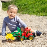 Oplev en robust børnetraktor med læsser, perfekt til leg både hjemme og i haven. Takket være den solide konstruktion og den gode plastkvalitet klarer den leg i sand, i gården og på børneværelset. Frontskovlen er let at betjene og støtter udviklingen af finmotorik og fantasi.