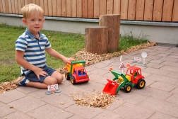 Traktoren er fremstillet af kvalitetsplast, der tåler intensiv børneleg både ude og inde.