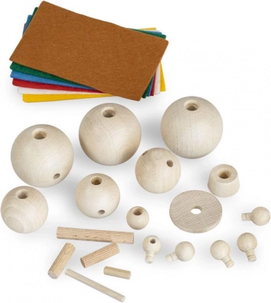 Saml dine egne dyr og figurer af glatte trædele og fuldend dem med farverig filt. Perfekt til kreativt samvær i familien.