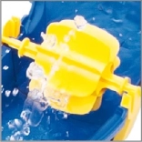 Børn kan hælde vand og skabe strøm, der sætter bådene i bevægelse.
