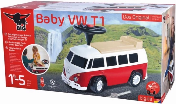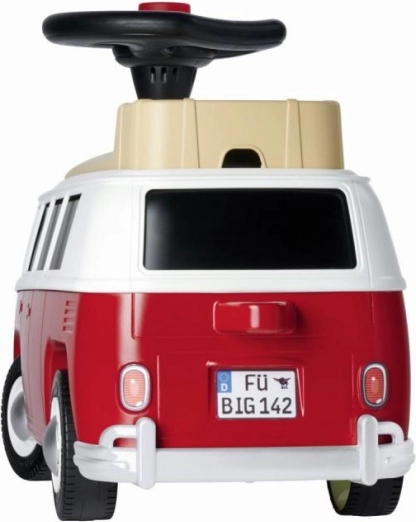 Stilfuldt skubbekøretøj i designet af den klassiske Volkswagen T1, ideelt til små eventyrere. Udskiller sig ved komfort og sikkerhed med stille hjul, der ikke efterlader spor.