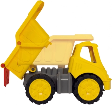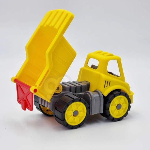 Legetøjet efterligner store bygge køretøjer og tiltrækker opmærksomhed med sin klare gule farve hos enhver lille bygger.