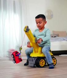 Tårnet drejer 360° om sin egen akse, og den funktionsdygtige bom med stærkt kabelspil (trækkraft op til 450 g) lader børn løfte og flytte genstande på realistisk vis.