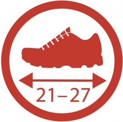 Stropper og en elastisk form gør det nemt at sætte dem på forskellige børnesko og giver pålidelig hold selv ved rask kørsel.