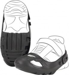 Praktiske sorte beskyttende skoovertræk fra BIG holder børnesko sikre under kørsel på løbecykler og bobbycars. Takket være det bløde og slidstærke materiale tilpasser overtrækkene sig nemt til forskellige skotyper, skrider ikke og efterlader ingen mærker. Justerbar størrelse sikrer fast pasform og komfort for små kørere selv ved opbremsning og kørsel på ujævnt underlag.