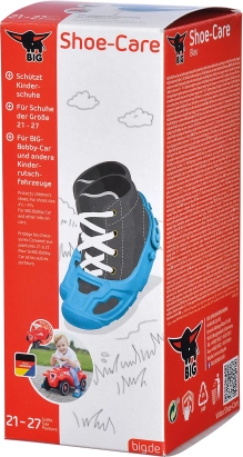 De beskyttende skoovertræk fra BIG er designet til sikker og bekymringsfri kørsel på løbecykler og andre børnekøretøjer. Det bløde, formbare materiale beskytter skoene mod slid og snavs, mens den skridsikre overflade hjælper ved både afsæt og bremsning.