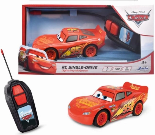 Fjernstyret bil Lynet McQueen med Cars 3-licens. 1 kanal (kører fremad, bagud og drejer), frekvens 27 MHz. Skalaforhold 1:32, længde 14 cm.