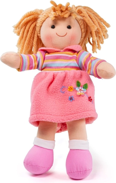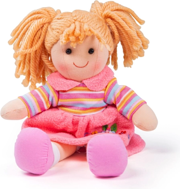 Dukken Jenny fra Bigjigs Toys er designet med fokus på sikkerhed og børns glæde. Den er lavet af blødt tekstil, hvilket gør den ideel til både kram og daglig leg. Jenny er klædt i et farverigt outfit, der nemt kan skiftes efter behov.