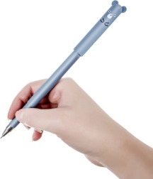 Sættet indeholder 4 stilfulde viskelbare penne i farverne grå, hvid, rosa og blå med legende dyremotiver (gris, panda, mus, bjørn). Takket være termofølsomt blæk retter du nemt små fejl – brug blot viskelæret i enden af pennen og skriv igen, uden grimme overstregninger.