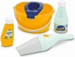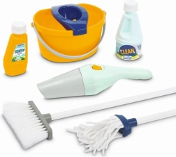 Vognen indeholder alle nødvendige værktøjer til leg med rengøring, inklusive kost, moppe og håndstøvsuger.