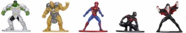 Det robuste metalkorpus suppleres af præcis lakering, som fremhæver farver, kostumer og superheltenes ikoniske elementer.