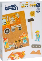 Dette kreative hammersæt med korkplade er et glimrende valg for små byggere og transportentusiaster. Børn kan skabe arbejdere, en betonblander, en kran eller biler af træformene og fastgøre dem sikkert til korktavlen med tegnestifter. Den praktiske opbevaringsboks sikrer, at ingen dele bliver væk.