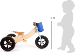Balancecyklen kan nemt konverteres fra en trehjulet til en tohjulet balancecykel, hvilket er ideelt til forskellige vækstfaser og barnets selvtillid.