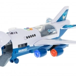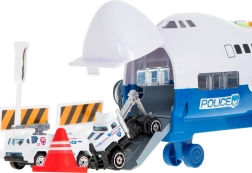 Takket være det rummelige dæk kan flyet transportere op til 6 politibiler. Integreret LED-belysning på motorerne gør legen mere attraktiv.