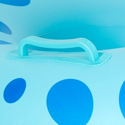 Det glade blå design med prikker styrker den positive relation til vand og gør hver badetur til en leg.