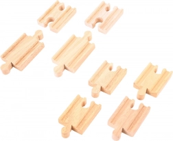 Disse universelle skinnesamlere på 7 cm er ideelle til at supplere eller reparere dit eksisterende sæt. De er lavet af kvalitets, ansvarligt indkøbt træ og passer perfekt til de fleste træjernbaner. Takket være den præcise formning forbindes delene let og garanterer stabil og jævn kørsel for togene.