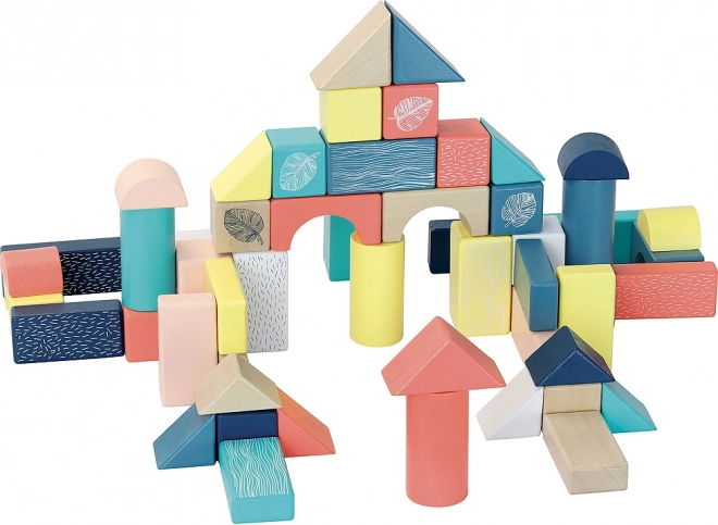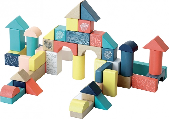 Dette sæt træklodser Canopée byder på en farverig kombination af malede og naturlige dele i mange former – fra bjælker og terninger til buer, cylindre og trekanter. Børn kan bygge tårne, huse og hele små byer, udvikle fantasien og lære grundlæggende principper for balance.