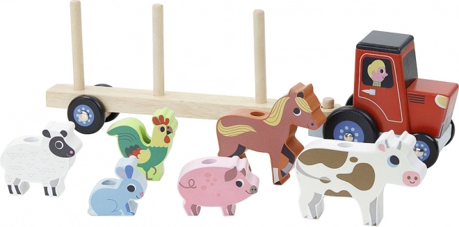 Den glade trætraktor fra VILAC med aftagelig trailer og seks søde dyr (hare, får, hane, hest, gris, ko) er den ideelle legeting for børn fra 2 år. Når figurerne sættes på og traileren køres rundt, træner børn hånd-øje-koordination, tålmodighed og fantasi.