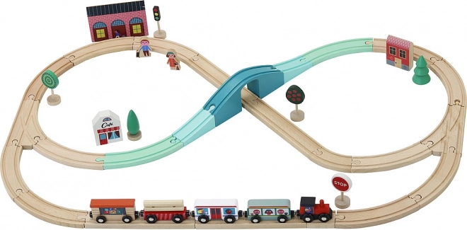 Sættet er kompatibelt med andre trætogbaner på markedet, så banen kan udvides når som helst. Den retro kuffert sikrer praktisk opbevaring og transport, og det originale design af Ingela P. Arrhenius giver hele sættet en unik stil.