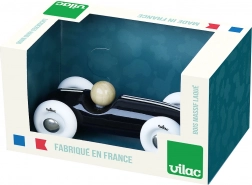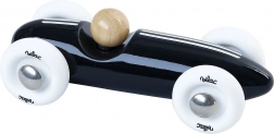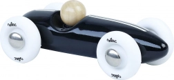 Et stilfuldt lille træbil i elegant sort glæder både små racerkørere og designelskere. Fremstillet i Frankrig af lakeret træ, med stille hvide gummihjul for jævn kørsel på alle gulvtyper og et tidløst vintage-look ideelt til leg og som dekoration.
