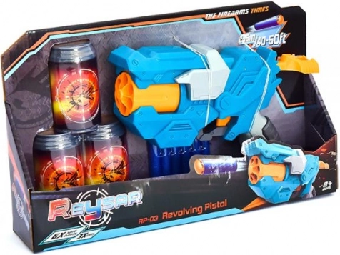 I pakken er der tre plastdåser, som fungerer som mål til træning af sigte, samt seks bløde skumkugler for sikker leg. Et perfekt valg til præcisionskonkurrencer derhjemme og actionfyldte dueller med legekammerater.