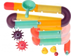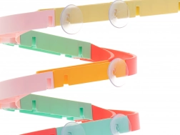 Hver dag kan du skabe en ny racerbane, hvor børnene lærer ikke kun at skabe, men også at konkurrere i sjove løb med farvede bønner og kugler. Skydderen er udstyret med sugekopper for let fastgørelse på fliser eller kar, hvilket sikrer stabilitet under legen.