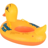 Gør badning og vandpjask til sjov og hygge. Den oppustelige badering til de mindste i form af en sød lille and har et komfortabelt integreret sæde med to benåbninger, som hjælper med at forhindre udskridning. To sidehåndtag giver barnet tryghed, mens de klare gul‑orange farver indbyder til leg.