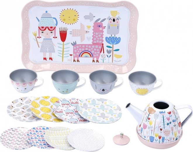 Et charmerende tesæt i metal til børn med illustrationer af SUZY ULTMAN, der bringer glæde til enhver tesammenkomst. Sættet indeholder en musikalsk tekande, der spiller melodien „Masser af held og sundhed“, når man hælder, et 14-dels metalsæt med bakke, kopper og tallerkener samt en praktisk kuffert til transport. Ideelt fra 3 år.