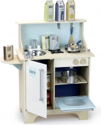 Det blå trækøkken VILAC Cuistot forvandler ethvert børneværelse til et lille kulinarisk studio. Børn vil elske de realistiske detaljer som komfur med klikbare knapper, vask og ovn og kan nyde timevis af kreativ leg med det omfattende sæt af tilbehør.