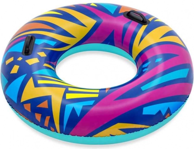 Nyd sommeren med BESTWAY oppustelig badering med en diameter på 107 cm med et farverigt geometrisk mønster og to håndtag for et sikkert greb. Fremstillet af holdbar, forudtestet vinyl med sikkerhedsventil, ideel til afslapning ved poolen og på stranden.