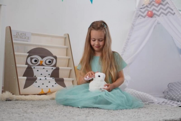 Takket være den enkle betjening kan selv mindre børn lege med den. Når den tændes, tripper kaninen sødt afsted, laver lyde og bevæger sin snude, hvilket skaber en autentisk legeoplevelse.