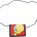 Sød børnepung med motiver af Tweety og Sylvester fra LOONEY TUNES, ideel til lommepenge og penge til madpakken. Takket være den praktiske ring til fastgørelse og snor til halsen bliver den ikke så let væk. Det robuste tekstilmateriale tåler daglig brug.
