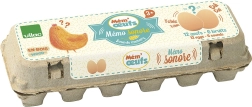Lydmemory i form af æg i klassisk papæske er ideel til udvikling af sensoriske evner hos børn. Legetøjet støtter hukommelsen ved at børnene leder efter par af æg med samme lyd.