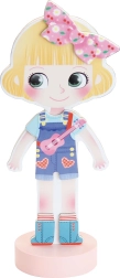 Den stilfulde designer Mia venter på, at du vælger det smukkeste outfit til hende. Med en robust træfigur på en stabil base og magnetiske dele kan børn nemt kombinere kjoler, sko og tilbehør og skabe utallige modekombinationer.