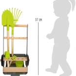 Denne havevogn giver unge gartnere mulighed for at arbejde på deres drømmebed. Den stabile vogn af bøg og metal kan let skubbes eller trækkes rundt i haven, da den er udstyret med solide hjul. Indeholder 5 stykker værktøj til sikker og sjov havebrug.